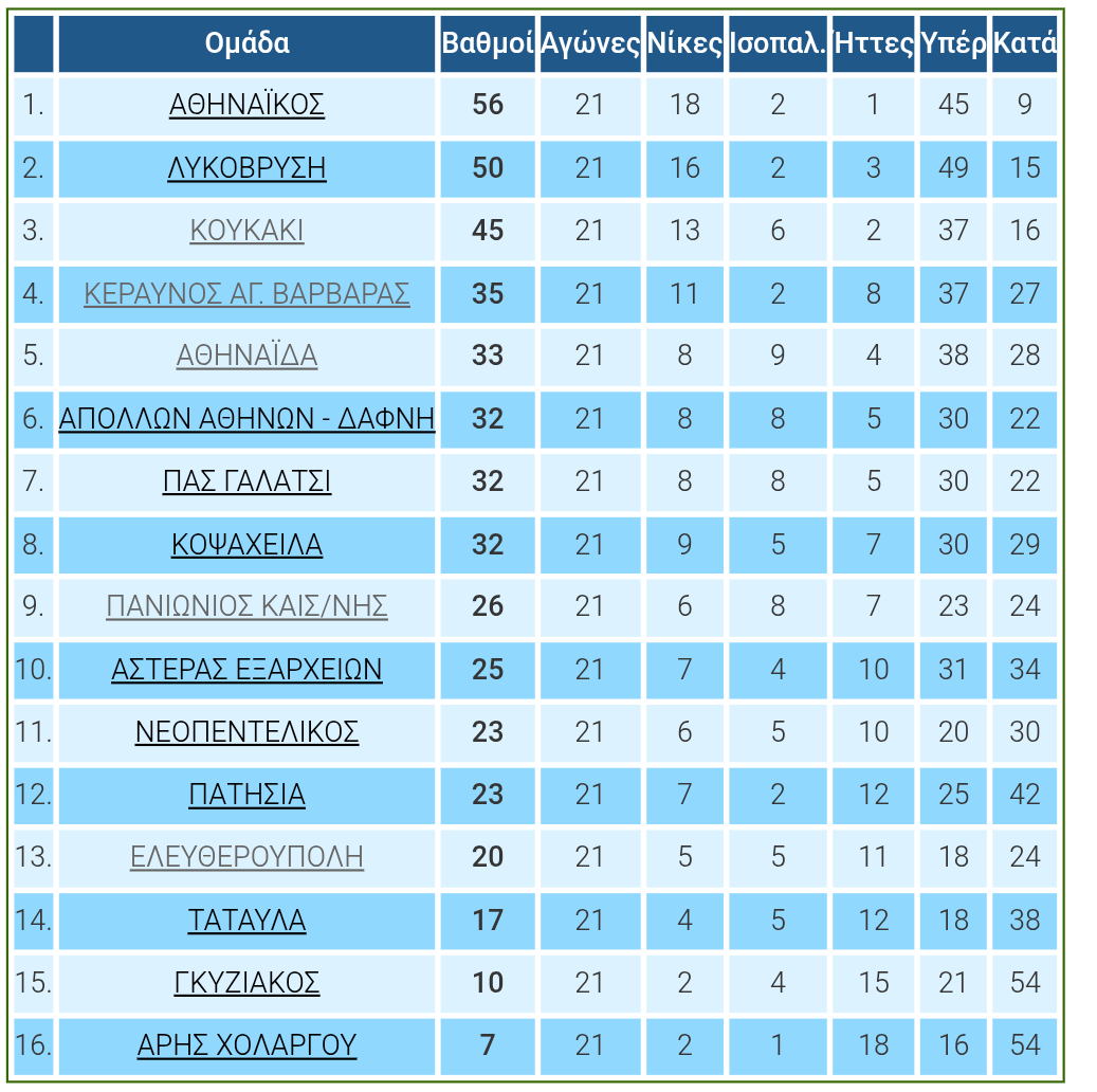 • Μετά την ολοκληρωση της 21ης αγωνιστικής